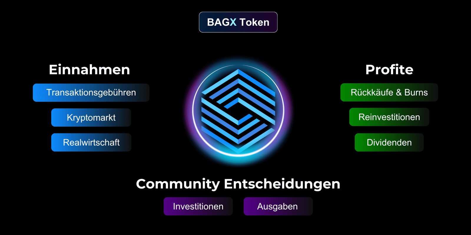 Dividenden und Token-Rückkäufe: Ein Teil der Einnahmen wird genutzt, um Dividenden an die Mitglieder auszuschütten und gleichzeitig BAGX Tokens vom Markt zurückzukaufen und zu vernichten. Diese Verknappung führt zu einer kontinuierlichen Steigerung des Token-Wertes.